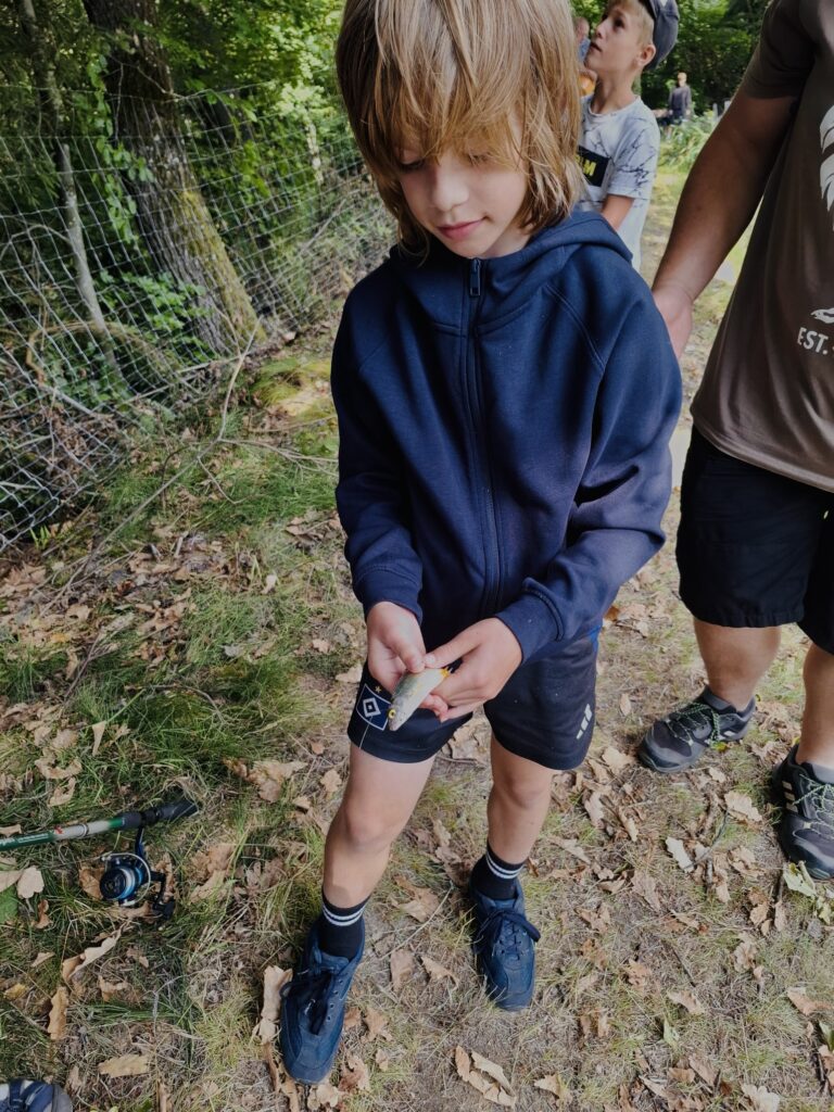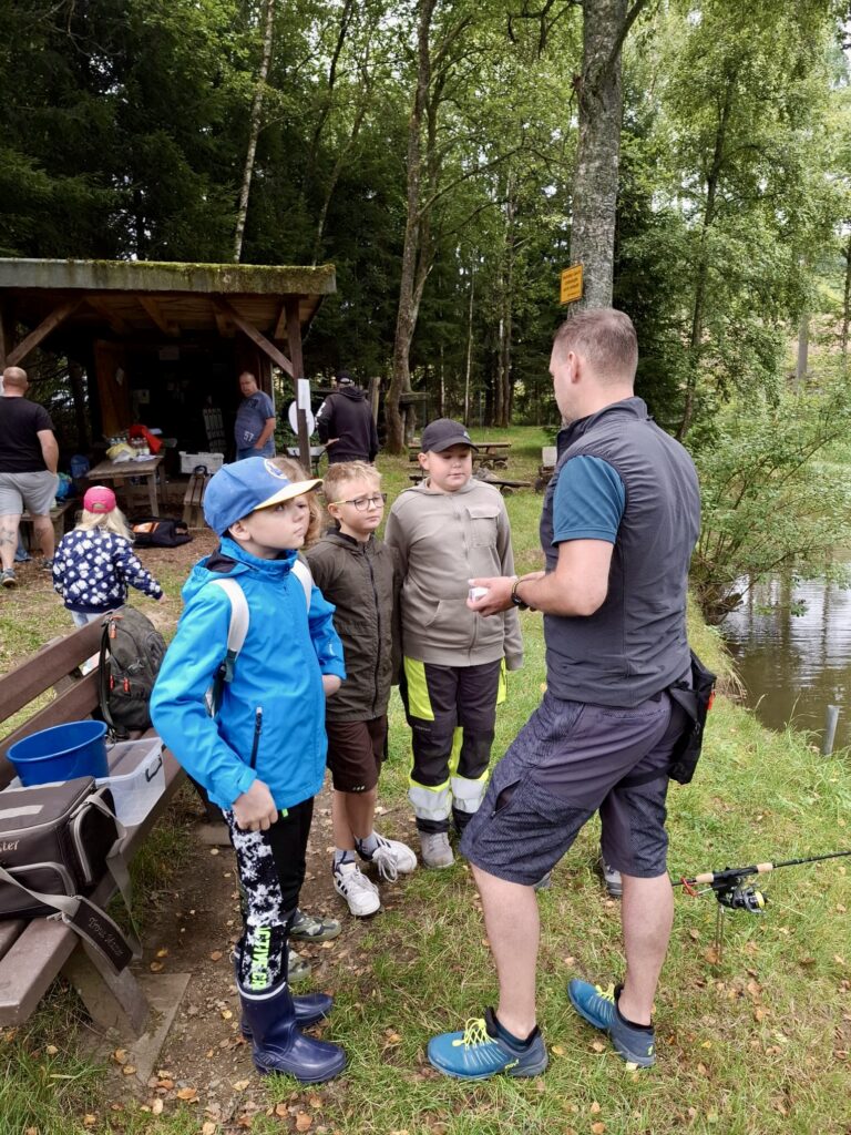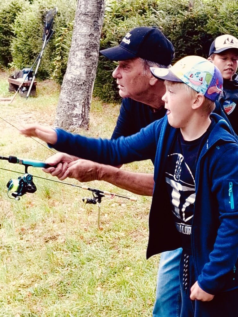 Im Zuge der Burbacher Ferienspiele 2024 hat uns eine Gruppe Kinder am Weiher besucht. Die Kinder haben Wurftechniken geübt und durften sich ihre eigenen Fische fangen.