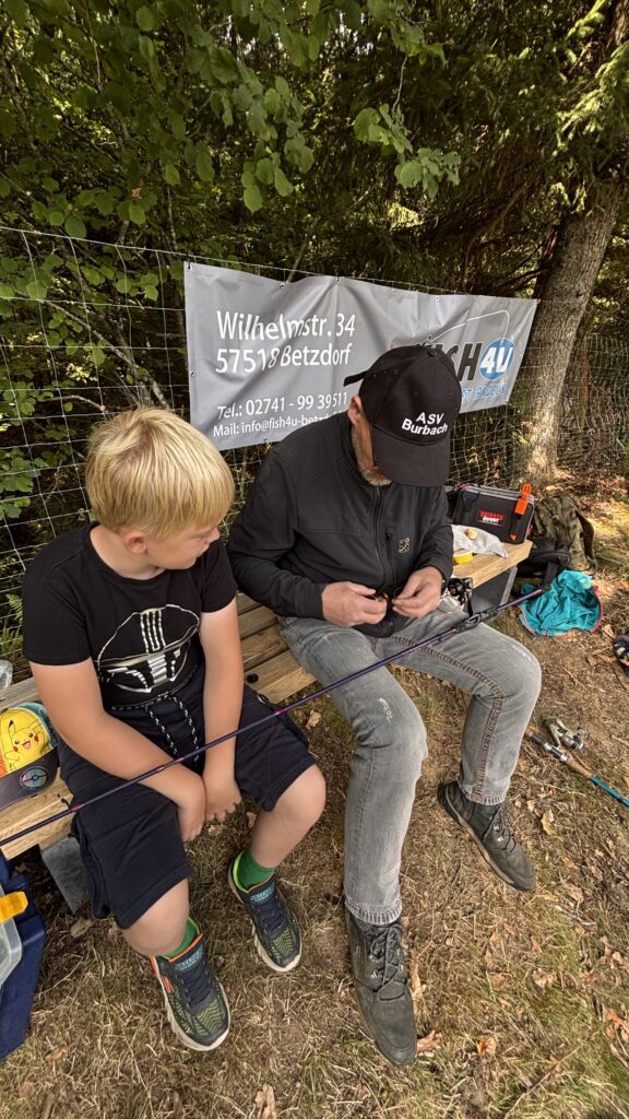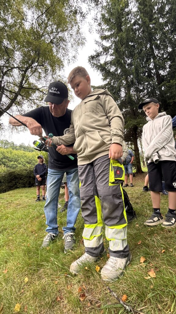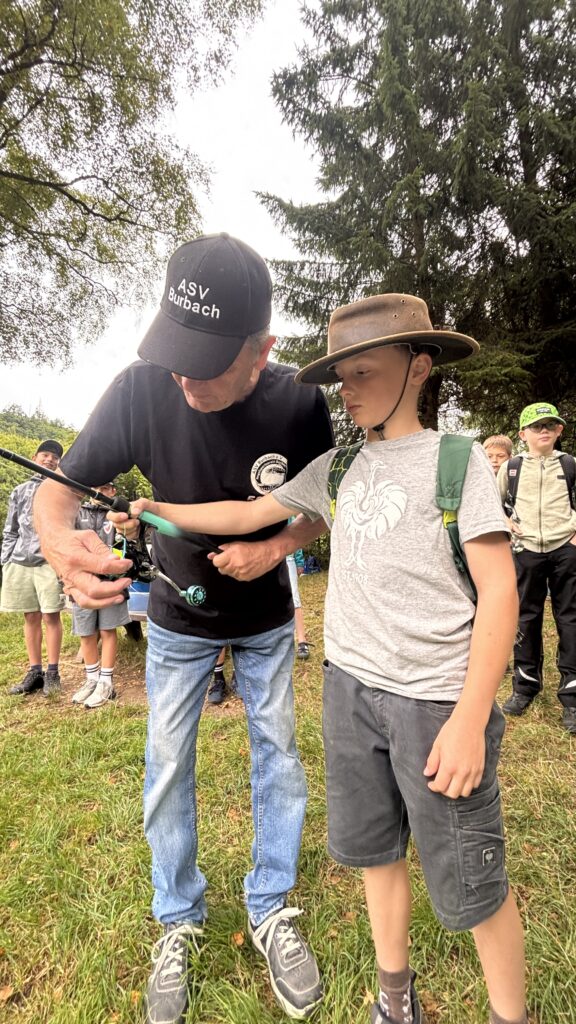 Am 16.08. war richtig was los beim ASV Burbach. Fast 20 Kinder und Jugendliche haben uns am Weiher besucht und durften einen Tag lang „Schnupperangeln“. Wir haben Knoten geübt und es gab eine kleine Lektion in Fischkunde. Aber auch das Angeln selbst durfte nicht zu kurz kommen. Nach einem Zielwurf-Wettbewerb auf ein schwimmendes Ziel ging’s dann endlich richtig los. Es hat soviel Spaß gemacht, dass einige Kinder bereits fragten ob sie in 2026 wieder kommen dürfen.